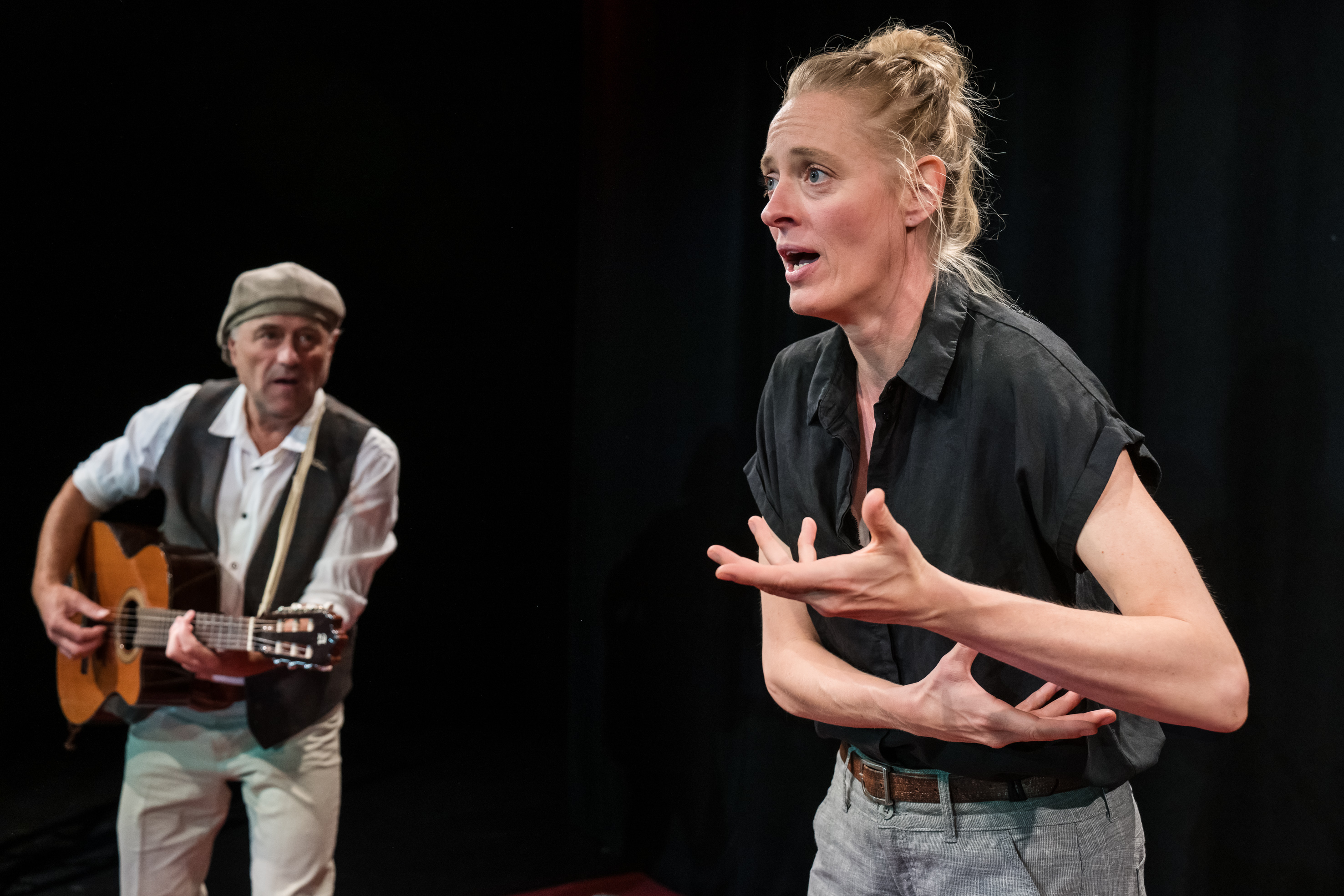 Guylaine Hemmer und Thomas Sutter erzählen die berühmte Geschichte mal einzeln, mal chorisch, mal mit Liedern und lassen ihre Instrumente – Gitarre, Perkussion und Melodie-Instrumente – tönen.
